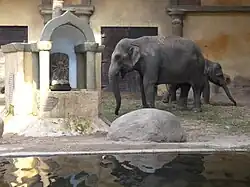 Seit November 2006 besitzt der Zoo eine 500 m² große Freilaufhalle, die optisch einer Tempelruine nachempfunden ist. Die Abgrenzung zum Besucher wird durch einen Wassergraben gebildet, der auch als Badebecken dient. Neben der Freilauffläche gibt es noch einen Boxenbereich und einen Geburtsstall, in dem die Elefantenkuh in der Gruppe ihr Baby zur Welt bringen kann. Insgesamt stehen den Elefanten im Haus 1100 m² zur Verfügung.