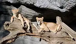 Mähnenspringer vor der künstlichen Felsenkulisse des Afrika-Panoramas