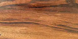 Das Holz erinnert in seiner streifigen Maserung an ein Tigerfell. Ähnlich ist Zebraholz.