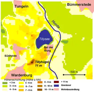 | Höhenschichtung des Geländes um den Tillysee | ||
