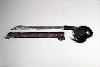 Ein weiterer Typ hat ein pistolenförmiges Heft. Die Scheiden sind zweiteilig und werden mit silbernen Metallbändern zusammengehalten. Die Klingen sind meist säbelförmig gebogen. Das Heft und die Scheide sind nicht verziert.