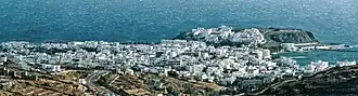 Ungefähr die Hälfte der Inselbewohner ist römisch-katholisch, die andere griechisch-orthodox. Das Zentrum der Katholiken ist Exobourgo, eine Felsenspitze im Innern der Insel. Xinara ist Sitz des Erzbistums Naxos, Andros, Tinos und Mykonos mit der Kathedrale Unsere Liebe Frau vom Rosenkranz. Der katholische Glaube wurde durch die Venezianer auf die Insel gebracht.