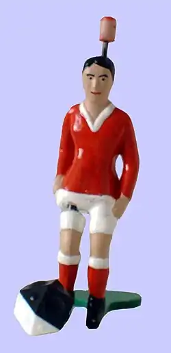 Aus den ursprünglichen Blechfiguren sind heute präzisere Kicker aus Zink geworden, das Grundprinzip ist aber gleich geblieben: Der Feldspieler kickt den Ball mittels des rechten, beweglichen Beins, indem der Spieler das Bein mechanisch durch einen Drücker auf dem Kopf der Spielfigur betätigt. Die Bälle, ursprünglich mit Spezialsägen aus Kork hergestellt, werden heute aus Plastik gespritzt. Sie sind zwölfeckig, haben 14 Flächen (sechs Quadrate und acht gleichseitige Dreiecke) und zur einen Hälfte schwarz und zur anderen Hälfte weiß.