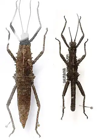 Tisamenus irenoliti, links weiblicher Holotypus, rechts männlicher Paratypus | ||||||||||||