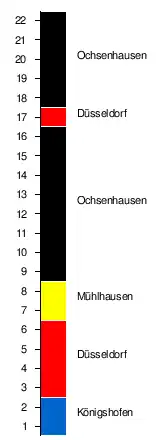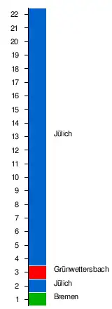 Wegen der ungeraden Zahl der spielenden Mannschaften setzte an jedem Spieltag der Reihe nach eine Mannschaft aus, was beim Betrachten dieser Statistiken berücksichtigt werden muss. So hatte Saarbrücken am ersten Spieltag spielfrei und belegte damit vorerst zwangsläufig den sechsten Platz. Die Reihenfolge des Aussetzens war Saarbrücken, Mühlhausen, Jülich, Bergneustadt, Grenzau, Ochsenhausen, Düsseldorf, Bremen, Bad Königshofen, Fulda, Grünwettersbach.