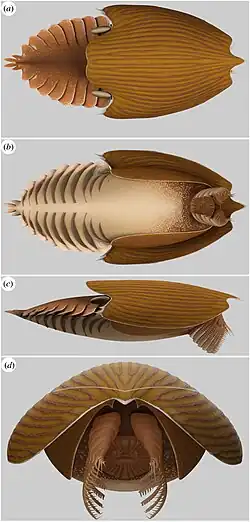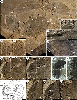 - ↑ a b c d e f g h i j k l J.-B. Caron und J. Moysiuk: A giant nektobenthic radiodont from the Burgess Shale and the significance of hurdiid carapace diversity. In: Royal Society Open Science. Band 8, Nr. 9, September 2021, doi:10.1098/rsos.210664.