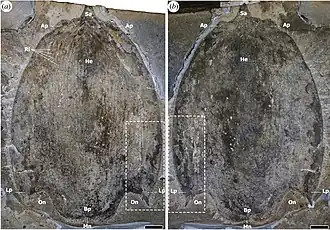- ↑ J. Moysiuk und J.-B. Caron: Burgess Shale fossils shed light on the agnostid problem. In: Proceedings of the Royal Society B, Band 286, Nummer 1894, 2019, Artikel 20182314, doi:10.1098/rspb.2018.2314.