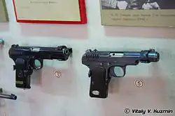 Bis in die 1920er-Jahre verfügte Russland und später die Sowjetunion nicht über Selbstladepistolen aus eigener Herstellung. Die Standardfaustfeuerwaffe sowohl der zaristischen als auch der Roten Armee war der Revolver Nagant M1895, dazu kamen verschiedene importierte Selbstladepistolen, unter denen besonders die Mauser C96 zu nennen ist.[2] Der Nagant wurde bereits damals als veraltet betrachtet und sollte durch eine im eigenen Land entwickelte Selbstladepistole abgelöst werden. So wurde zu Beginn der 1920er-Jahre ein Wettbewerb ausgerufen, an dem sich nahezu alle namhaften sowjetischen Waffenkonstrukteure beteiligten. S. A. Prilutzki stellte 1924 ein erstes Versuchsmodell vor, gefolgt von S.A. Korowin 1927 (M1927), beide im Kaliber 7,65 × 17 mm HR. Die Prilutzki-Pistole wurde weiter verbessert, 1928 zu Tests eingereicht und als M1928 bezeichnet.[2] Bei dem Vergleichsschießen 1928 schnitten sowohl Prilutzkis als auch Korowins Waffe besser als die als Vergleichswaffe hinzugezogene Walther-Pistole ab. Die M1928 wurde zwar zum Sieger erklärt, und der Konstrukteur mit weiteren Verbesserungen beauftragt, doch die zunächst angedachte Serie von 500 Stück für einen Truppenversuch wurde nicht gefertigt.[1] In der Zwischenzeit war die Diskussion um das Kaliber neu entbrannt und nunmehr sollte die wesentlich stärkere Mauser-Flaschenhalspatrone 7,63 × 25 mm, jedoch auf das Kaliber 7,62 × 25 mm umgestellt, als neue Ordonnanzpatrone eingeführt werden. Da eigene Waffen- und Munitionsentwicklungen in der Sowjetunion ebenso wie im früheren Zarenreich auf zölligen Maßen beruhten, wurde das neue Kaliber auf die gängigen Maschinen angepasst. Die alte Einheit Linie in der Feinmechanik entspricht 1/10 Zoll, somit ergeben drei Linien 7,62 mm.