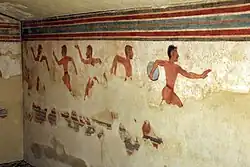 - ↑ Renato Bartoccini, Carlo Maurilio Lerici, Mario Moretti: Tarquinia: La tomba delle Olimpiadi – Le tombeau des Olympiades – The tomb of the Olympiad – Das Grab der Olympischen Spiele. Mailand 1959, S. 49.
