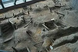 Das antike Kupferbergwerk wurde im Kupfertagebau Tonglüshan entdeckt. Der antike Abbau fand an zwölf verschiedenen Kupfervorkommen statt. Insgesamt wurden mehrere hundert Schächte und Stollen, Werkzeuge zum Abbau sowie mehrere Schmelzöfen zur Verhüttung des Erzes entdeckt. Anhand der Schlacke wurde die Menge des abgebauten Kupfererzes auf etwa 80.000 bis 100.000 Tonnen geschätzt.[1] Aufgrund der Brüchigkeit des Gesteins war das Erz auch mit primitiven Werkzeugen abbaubar, zur Sicherung war aufwändiger Ausbau notwendig.[2]