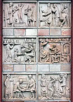 - 1956 Umlaufender Fries (Eingangsportal der Kunsthochschule Berlin-Weißensee, Bühringstraße)[5]