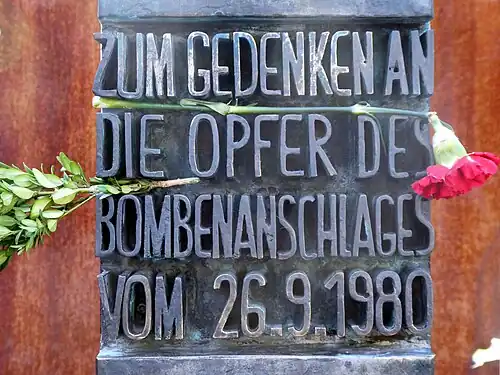 - ↑ Martin Bernstein, Annette Ramelsberger: Gedenktafel für größten rechtsradikalen Anschlag in Deutschland. In: Süddeutsche Zeitung. 4. September 2018, ISSN 0174-4917 (sueddeutsche.de).