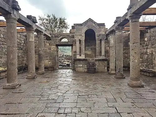 - Katzrin: Kleiner syrischer Giebel (Spolie); Doppelsäule der Ädikula.[6]
