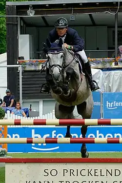 - Quite Capitol (1999–2015), Holsteiner Schimmelhengst, Vater: Quidam de Revel, Muttervater: Capitano, Züchter: Harm Thormählen, 2011 nach Kolumbien verkauft[14][15][16]