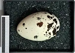 Die Eiablage ist innerhalb einer Kolonie stark synchronisiert. 80 % aller Eier werden in einem Zeitraum von zehn Tagen gelegt.[13] Der Zeitpunkt der Eiablage ist Anfang Mai im Süden und Anfang Juni im Norden des Verbreitungsgebietes.[11] Das Weibchen legt meist nur ein recht großes Ei. Es wiegt ca. 90 Gramm und ist damit um etwa 17 % leichter als das der Trottellumme.[9] Das Ei ist spindelförmig bis länglich oval, die Grundfarbe gewöhnlich weiß, gelegentlich aber auch bräunlich oder grünlich. Die Eier haben eine fein gekörnte, aufgeraute Oberfläche und weisen eine sehr variable Zeichnung aus braunen und schwarzen Sprenkeln, Punkten, Klecksen, Kritzeln und Bändern auf. Die Brutdauer ist sehr variabel und währt zwischen 28 und 43 Tagen, was vermutlich sowohl auf die unterschiedliche Brutintensität zu Beginn der Brutzeit als auch auf Wettereinflüsse zurückzuführen ist.[14][15] An der Bebrütung des Geleges und der Versorgung des Jungvogels sind beide Elternvögel beteiligt. Die Brutablösung erfolgt nach 12 bis 24 Stunden.