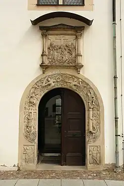 - ↑ Arndt Kiesewetter: Der aus dem Dresdner Residenzschloss stammende Alabasteraltar in der Torgauer Schlosskapelle. In: Jürgen Herzog und Hans-Christoph Sens (Hrsg.): Schriften des Torgauer Geschichtsvereins. Band 11. Sax Verlag, Beucha 2017, ISBN 978-3-86729-196-5, S. 189 ff.