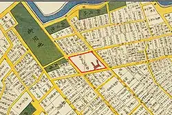 - ↑ a b Ausschnitt aus den Stadtteilkarten „Bancho“ von ca. 1850 und „Shitaya“ von ca. 1860.