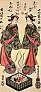 Kiyohiros Gestaltung der Drucke von Kabuki-Schauspielern, Genre-Szenen und jungen Mädchen (oft halbnackt), sind durch Fröhlichkeit und Frische charakterisiert, wobei er den Hintergrund oft einfallsreich gestaltet.