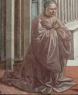 - ↑ Die Kirche heißt aktuell Santa Maria Maddalena de’ Pazzi und liegt im nordöstlichen Teil der Stadt Florenz, im heutigen Borgo Pinti. Ausgehend von der Fassade ist die Tornabuoni-Kapelle die dritte Kapelle auf der linken Seite des Mittelschiffes; vgl. für einen Überblick DePrano 2004, S. 196–204; ausführlich Luchs 1977, S. 83–85.