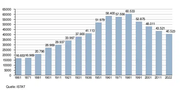 - ↑ Bilancio demografico e popolazione residente per sesso al 31 dicembre 2024. ISTAT. (Bevölkerungsstatistiken des Istituto Nazionale di Statistica, Stand 31. Dezember 2024).