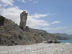 Der Torre de la Miel ist ein spanischer historischer und heute zerfallender Küstenwachturm mit einem konischen Sockel und zylindrischem Oberkörper. Er befindet sich am Ufer des Mittelmeers zwischen dem Strand von Molino de Papel und der Playa de las Alberquillas in der Gemeinde Nerja in der Provinz Malaga (Andalusien), Spanien.