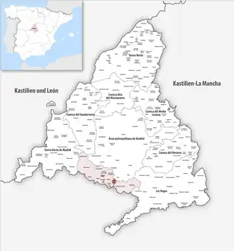 Die Gemeinde liegt rund 27 km südwestlich von Madrid an der Autovía A-42, die von Madrid nach Toledo führt und hier von der Straße M-404 gekreuzt wird.