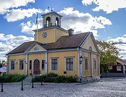- Torshälla Rathaus, gebaut in 1833. Die Turmuhr vom Rathaus wurde in 1580 aus dem Dom zu Strängnäs entfernt und in Torshälla Kirche eingebaut.