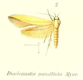 - ↑ a b c d J. C. Koster, S. Yu. Sinev: Momphidae, Batrachedridae, Stathmopodidae, Agonoxenidae, Cosmopterigidae, Chrysopeleiidae. In: P. Huemer, O. Karsholt, L. Lyneborg (Hrsg.): Microlepidoptera of Europe. 1. Auflage. Band 5. Apollo Books, Stenstrup 2003, ISBN 87-88757-66-8, S. 64 (englisch).