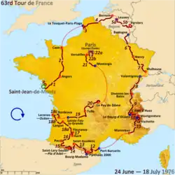 Die 63. Tour de France fand vom 24. Juni bis 18. Juli 1976 statt und führte auf 22 Etappen über 4016 km. Der fünffache Sieger Eddy Merckx ging nicht an den Start, der Franzose Bernard Thévenet war in schwächerer Form als bei seinem Sieg im Vorjahr, er gab schließlich auf der 19. Etappe auf. Es nahmen 130 Radrennfahrer an der Rundfahrt teil, von denen 87 klassifiziert wurden.