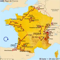 Die 64. Tour de France fand vom 30. Juni bis 24. Juli 1977 statt und führte über 22 Etappen mit 4096 km. Nach 1975 gewann Bernard Thévenet seine zweite Tour. Es nahmen 100 Rennfahrer an der Rundfahrt teil, von denen 53 klassifiziert wurden.