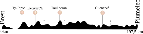 - Côte de Guenervé, Kategorie 4 (Kilometer 146,5) (117 m ü. NN; 2,1 km à 3,3 %)