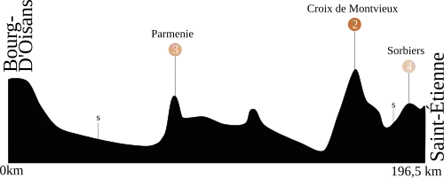 - Côte de Sorbiers, Kategorie 4 (Kilometer 188) (503 m ü. NN; 4,3 km à 3,2 %)