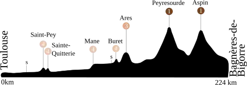 - Zielsprint in Bagnères-de-Bigorre (Kilometer 224) (544 m ü. NN)
