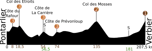 - Verbier, Kategorie 1 (Kilometer 198,5) (830 m ü. NN; 8,8 km à 7,5 %)