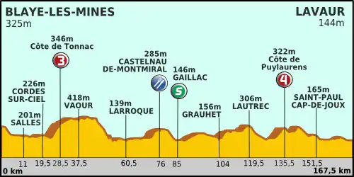 Die 11. Etappe der Tour de France 2011 am 13. Juli führte über 167,5 Kilometer von Blaye-les-Mines nach Lavaur. Auf der Etappe gab es eine Sprintwertung, außerdem jeweils eine Bergwertungen der 3. und der 4. Kategorie. Es gingen noch 177 der 198 gemeldeten Fahrer an den Start.