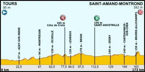 | Côte de Crotz Kategorie 4 nach 77,5 km auf 165 m 1,2 km bei 4,0 % | |||