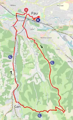 | Etappenziel in Pau nach 27,2 km auf 205 m | |||