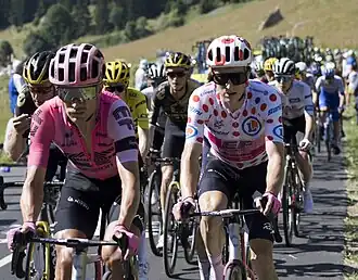 In der Gruppe um das Gelbe Trikot überquerten rund 20 Fahrer die Côte des Amerands. Auf der Kuppe hatte Felix Gall einen technischen Defekt und verlor den Anschluss zu den anderen Gesamtklassement-Fahrern. Nach der kurzen Zwischenabfahrt fiel auch Jai Hindley (Bora-hansgrohe) zurück, ehe Rafał Majka (UAE Team Emirates) das Tempo für Tadej Pogačar forcierte. Nachdem Adam Yates (UAE Team Emirates) die Tempoarbeit übernommen hatte, konnten nur Jonas Vingegaard und Tadej Pogačar am Hinterrad des Briten bleiben. Rund drei Kilometer vor dem Ziel ließ Tadej Pogačar eine Lücke zu Adam Yates aufgehen, der zu seinem Teamkollegen Marc Soler aufschloss. Da die beiden Favoriten sich erneut beobachteten, schloss Carlos Rodríguez (Ineos Grenadiers) erneut auf und forcierte das Tempo um seinen Rückstand auf Adam Yates gering zu halten. Rund 1500 Meter vor dem Ziel griff Tadej Pogačar an, konnte Jonas Vingegaard jedoch nicht distanzieren. Die beiden überholten Adam Yates und erreichten das Ziel auf den Plätzen 16 und 17. Adam Yates folgte mit einem Rückstand von 20 Sekunden und holte 18 Sekunden auf Carlos Rodríguez auf. Jai Hindley verlor fast zwei Minuten auf das Gelbe Trikot, er erreichte den Etappenrang 25.