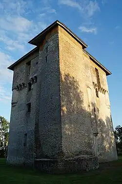 Den Wehrturm aus Kalksteinquadern, der von einem Wassergraben geschützt war, konnte man nur über eine Zugbrücke erreichen. Im ausgehenden Mittelalter und frühen Neuzeit diente der Turm als Herrensitz, er war in den Wohnräumen an der Ostseite mit vier gotischen Kaminen ausgestattet.