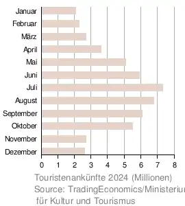 - ↑ International tourism, number of arrivals - Turkiye. In: World Bank. Abgerufen am 1. Juni 2025.