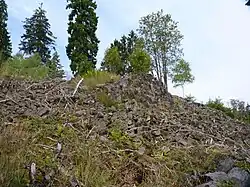 Auf dem Nordosthang der Trödelsteine wachsen mehrere Bäume, der Südwesthang ist komplett bewaldet.