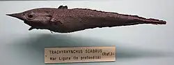 Synonyme sind: Trachyrincus scabrus,[5] Oxycephas scabrus,[5] Trachyrhynchus scabrus,[5] Trachyrincus anonyme,[12] Lepidoleprus trachyrincus,[2] Trachyrincus trachyrincus[2] und Macrurus trachyrhynchus.[2][3]