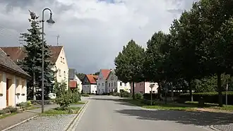 Der Dorfgrundriss ist im Wesentlichen der eines Straßenangerdorfs. Um die geweitete Hauptstraße (Redwitzer Straße) – im Wesentlichen in dem Bereich, wo diese in west-östlicher Richtung verläuft – gruppieren sich die alten landwirtschaftlichen Gehöfte, d. h. die Bauernstellen, die häufig aus mehreren Einzelgebäuden bestehen (d. h. Wohnhaus und Stall bzw. Scheune getrennt). Sie liegen zumeist giebelständig und mit den Wohnbereichen zur Straße, langgestreckte Bauten ziehen sich zum Teil weit in die Grundstücke hinein. Am westlichen Ende des Angers biegt die Hauptstraße rechtwinklig nach Süden in Richtung Redwitz ab, am Ostende ebenso rechtwinklig nach Norden in Richtung Mannsgereuth.