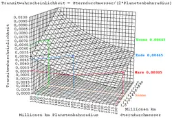 Für unser Planetensystem ergäbe das folgende Werte für die Transittiefe.