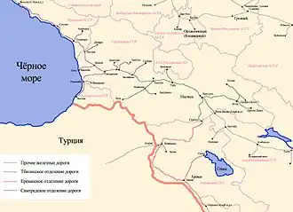 Die Eisenbahnen in der Sowjetunion waren in relativ selbständige „Eisenbahndirektionen“ unter dem Dach der Sowjetischen Eisenbahnen (SŽD/СЖД) gegliedert. Die für den Bereich südlich der Großen Kaukasus zuständige „Eisenbahndirektion“ übernahm die Bezeichnung „Transkaukasus-Eisenbahn“ (resp. „Transkaukasische Eisenbahn“ bei Übersetzung des russischen Namens).[5]