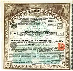 Die erste Eisenbahngesellschaft, die hier tätig wurde, war privatwirtschaftlich organisiert. 1871 wurde die Eisenbahngesellschaft Poti-Tiflis (russisch Поти-Тифлисской Железной Дороги) gegründet. Ihre wichtigste Eisenbahnstrecke war die Verbindung Batumi/Poti–Tiflis–Baku. Diese Gesellschaft ging 1883 in der Transkaukasus-Eisenbahn (russisch Закавказской железной дорога) auf.[1] Die Transkaukasus-Eisenbahn wiederum wurde 1889 verstaatlicht[2], wobei aber der Name beibehalten wurde (Kaiserlich Russische Transkaukasus-Staatsbahn).[3] Zum 1. Dezember 1899 übernahm die Transkaukasus-Eisenbahn die Tiflis-Karsker Eisenbahn.[4]