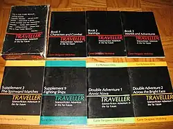 - Traveller (CT, 1977–1986, Far Future Enterprises) – Das originale Traveller-Spielsystem, welches das sogenannte Goldene Zeitalter des Dritten Imperiums behandelt. Hiervon sind auch einige deutschsprachige Bücher bei Fantasy Productions erschienen. Das Setting, später Classic Traveller (CT) genannt, konzentriert sich auf die Spinwärts-Marken des Imperiums und die angrenzenden Gebiete.