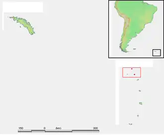Geographische Lage 56° 36′ S, 27° 43′ W