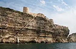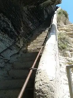 Von Menschen direkt in den Kalksteinfelsen der Kliffküste von Bonifacio geschnitten, besteht die Treppe aus 187 Stufen und hat eine Neigung von ungefähr 45°.