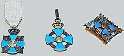 Für militärische Verdienste konnte der Orden auch mit gekreuzten Schwertern durch die Kreuzwinkel verliehen werden.